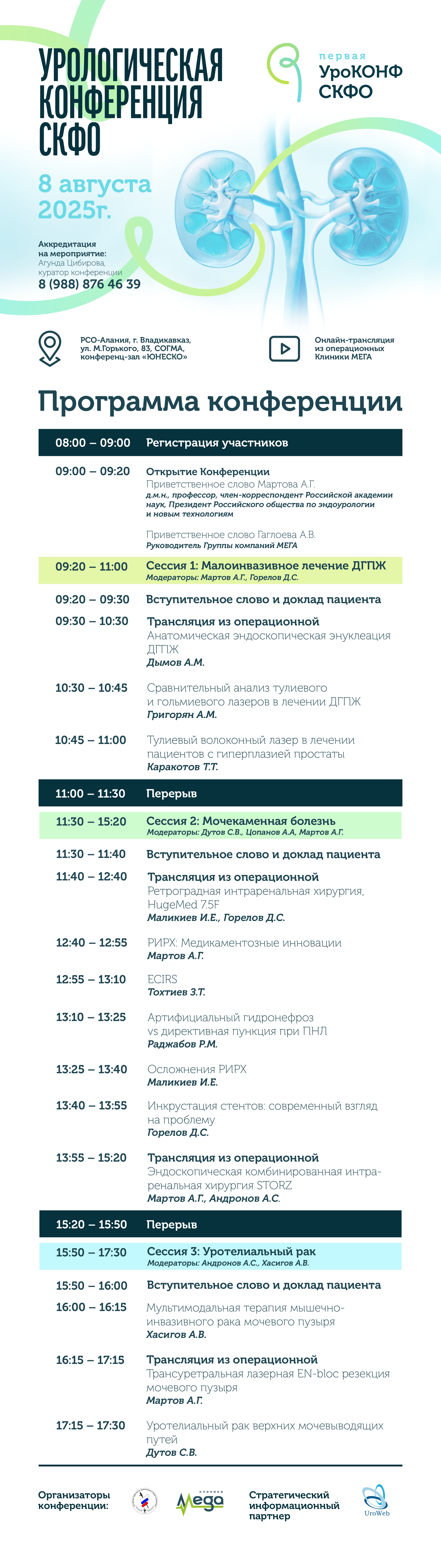 8 августа в зале «ЮНЕСКО» СОГМА состоится Первая урологическая конференция СКФО под патронажем Российского общества по эндоурологии и новым технологиям во главе с профессором Мартовым А.Г.